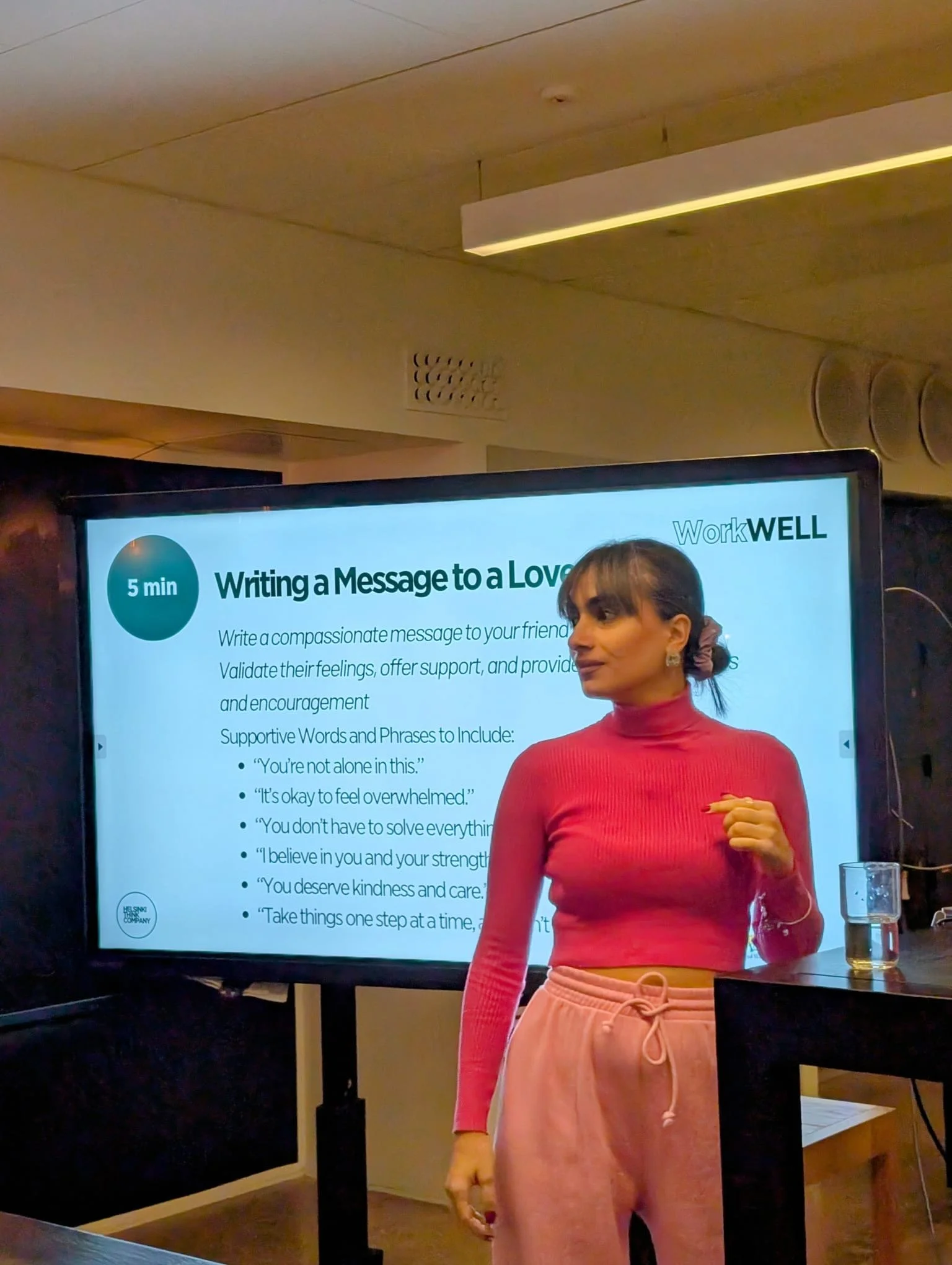 As part of the WorkWell Project at Think Company, I delivered a workshop on Self-Compassion. The session focused on fostering self-kindness and was complemented by a kindness meditation to help participants recharge after work.